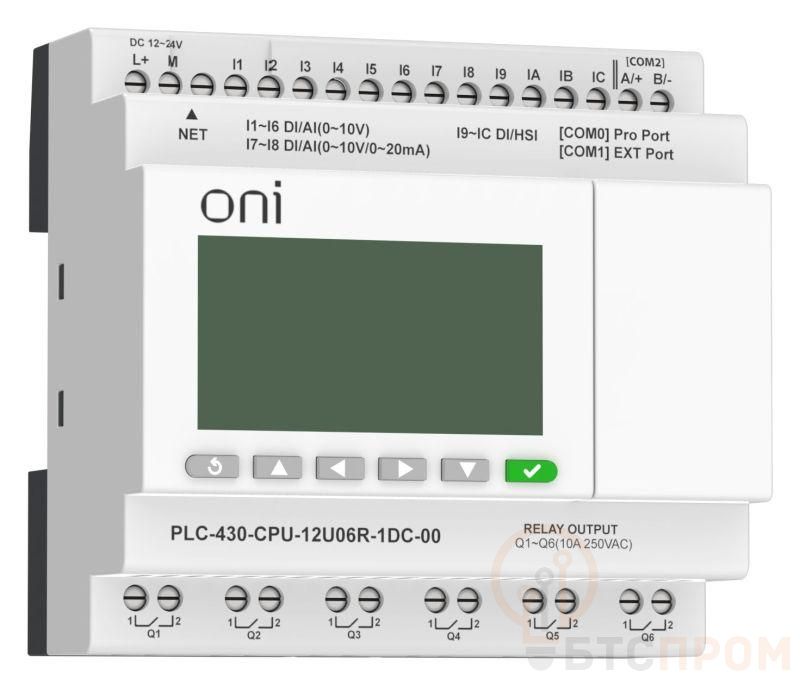 Модуль ЦПУ ПЛК 430 4 DI 6 UI (0-10В/DI) 2 UI (0-10В/0-20мА/DI) 6 RO 24В DC с Ethernet портом с экраном ONI PLC-430-CPU-12U06R-1DC-00