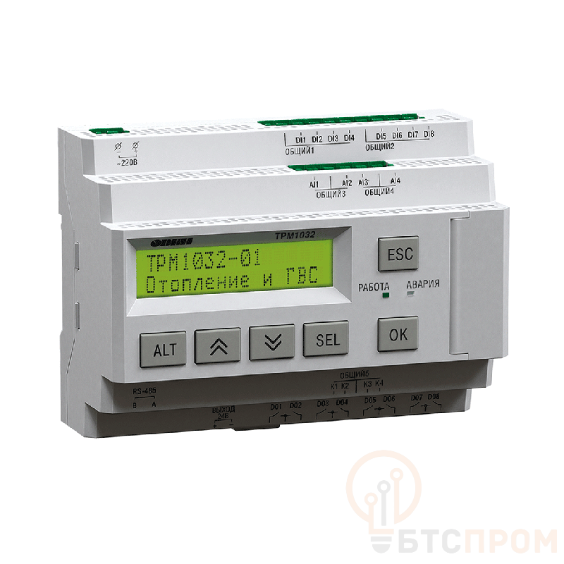 Регулятор ТРМ1032-230.24.02 от компании ОВЕН — это многофункциональный цифровой контроллер, предназначенный для автоматического поддержания температуры в системах отопления и горячего водоснабжения. Прибор оснащен двумя независимыми каналами измерения, что позволяет гибко управлять двумя объектами или контурами одновременно. Он работает с термосопротивлениями типа Pt100, Pt500, Pt1000 и обеспечивает точное регулирование по заданному алгоритму (ПИД-регулирование).
