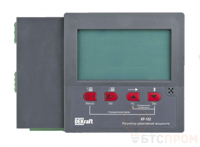Регуляторы реактивной мощности серии КР-102 — это специальный контроллер для компенсации реактивной мощности в низковольтной системе распределения электроэнергии, который определяет коэффициент мощности в сети и в зависимости от его значения производит автоматическое включение или отключение конденсаторных батарей для обеспечения требуемого коэффициента мощности. Напряжение катушки управляемого контактора 400 В, 12 ступеней регулирования, 4 режима работы, встроенный датчик температуры.