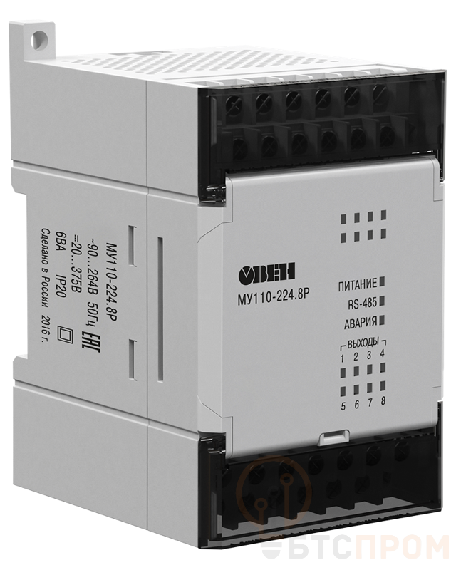 Модуль дискретного вывода МУ110-224.16Р от компании ОВЕН — это надежное устройство, предназначенное для коммутации мощных нагрузок в системах автоматизации. Модуль оснащен 16-ю релейными выходами с нормально разомкнутыми контактами, каждый из которых способен коммутировать нагрузку до 5А при напряжении 250В переменного тока. Устройство подключается по интерфейсу RS-485 и поддерживает широко распространенные протоколы OWEN Protocol и ModBus RTU, что обеспечивает легкую интеграцию в существующие АСУ ТП.