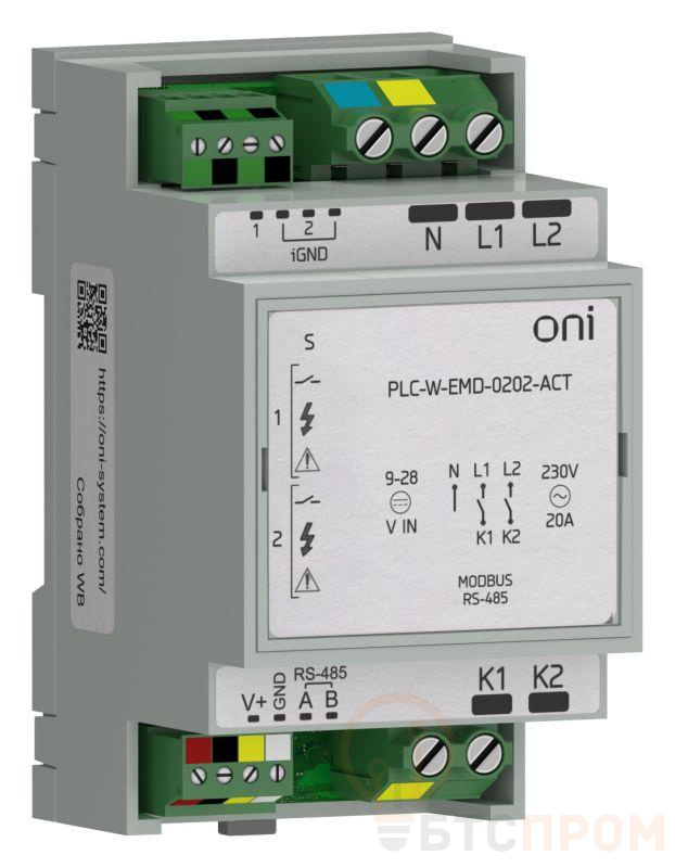 Модуль расширения входов/выходов для контроллеров PLC-W 2 DI "сухой контакт" и 2 DO 250В AC или 30 В DC номинальная нагрузка до 20А (4,5 кВт) на канал. Предназначен для коммутирования и мониторинга мощной силовой нагрузки общего назначения, в т.ч. индуктивной: управления двигателями, обогревателями и т.д. С коммуникацией Modbus RTU.