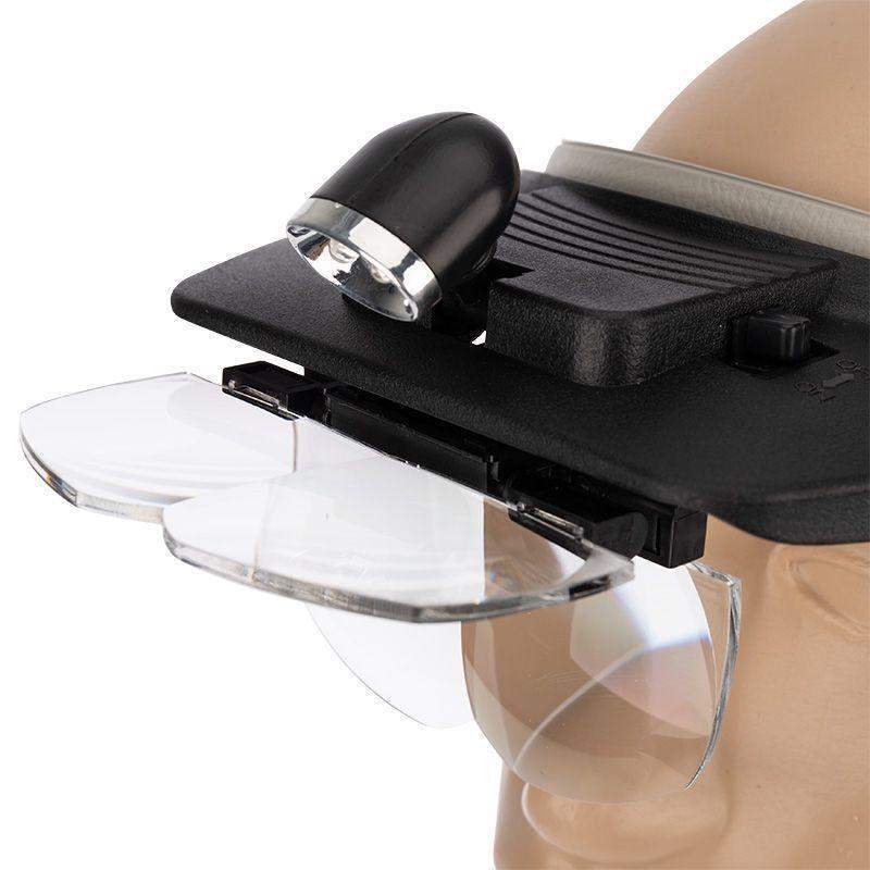 Налобный бинокуляр REXANT со сменными линзами разной кратности увеличения. Применяется при пайке, моделировании, ювелирной обработке, а также при работе с мелкими деталями. Прибор оснащен LED подсветкой с регулируемым направлением света, которая позволяет проводить работы при недостаточном освещении. Питание подсветки осуществляется от двух батареек типа ААА. В устройстве предусмотрено удобное налобное крепление, регулируемое по размеру. В комплект поставки входит набор сменных линз 1,2х/1,8х/2,5х/3,5х. Линзы поставляются в отдельном пластиковом футляре, благодаря чему защищены от царапин и повреждений, возникающих во время транспортировки или хранения. Конструкция позволяет одновременно установить две линзы для получения большего увеличения (16 вариантов).