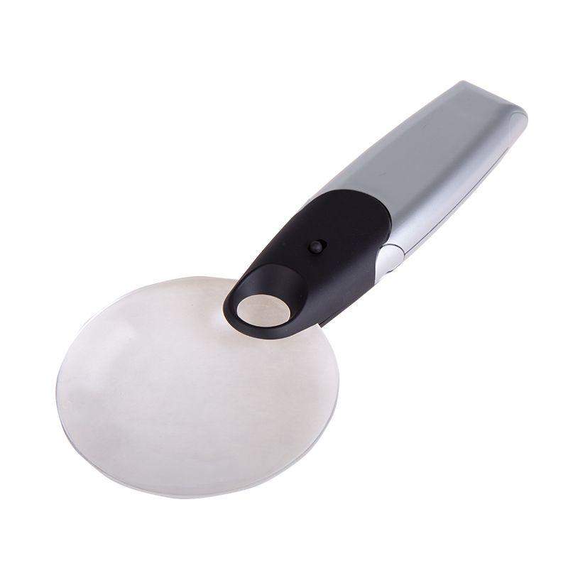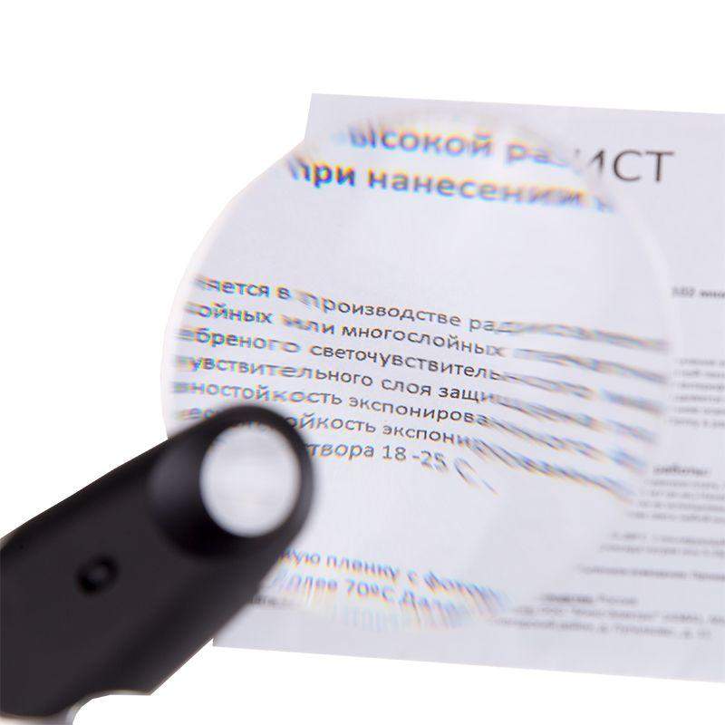 Лупа с легкой асферической линзой применяется при пайке, моделировании, ювелирной обработке, а также при работе с мелкими деталями. Популярна среди медиков, криминалистов, нумизматов. Диагональ линзы - 90мм. Изделие оснащено LED подсветкой. Включение/выключение подсветки обеспечивается посредством нажатия кнопки, расположенной на корпусе устройства. Удобная рукоятка обеспечивает удобное использование.