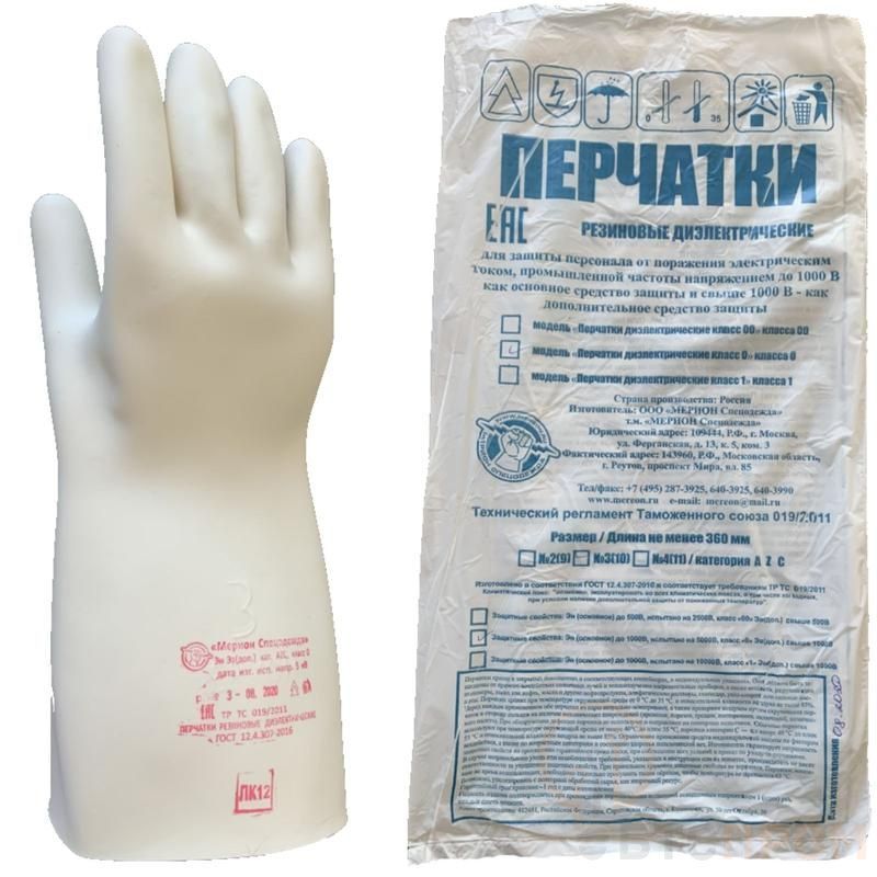 Перчатки диэлектрические класс 0 ГОСТ 12.4.307-2016 (50 пар. в кор.) Перчатки диэлектрические Материал- натуральный латекс, класс защиты 0, до 1 кВ. Диэлектрические перчатки, предназначенные для использования, как основного защитного средства, в электроустановках до 1000 В, могут применяться для защиты рук, как дополнительное средство защиты в электроустановках с напряжением свыше 1000В. Длина перчаток должна быть не менее 360 мм. Защитные свойства: Эн,Эв. Размеры 2(9), 3(10), 4(11).