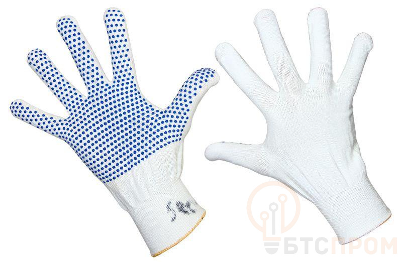 Нейлоновые перчатки с полиуретановым покрытием предназначены для защиты рук от загрязнений и небольших механических повреждений при проведении тонких работ, где требуется сохранить высокую тактильную чувствительность пальцев. Изготовлены из нейлона и характеризуются повышенной плотностью вязки (13 петель на дюйм) и малой толщиной нейлоновой нити, что позволяет сохранить чувствительность пальцев при работе, а также придает перчаткам прочность и износостойкость. Перчатки точечно покрыты полиуретаном и обеспечивают уверенный захват предметов. Структура нанесенного покрытия позволяет коже рук дышать. Край манжеты обработан плотной нитью, внутрь манжеты помещена резинка, которая дополнительно фиксирует перчатку на руке.