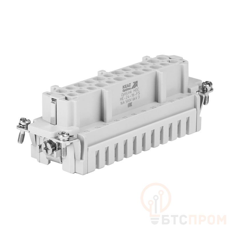 Розетка промышленная OptiLink HDC-HE-24-16-FS-(0.14-2.5) 500В от КЭАЗ предназначена для подключения переносного электрооборудования в электрических сетях переменного тока. Изделие рассчитано на номинальное напряжение до 500 В и номинальный ток 16 А. Ключевая особенность — поддержка широкого диапазона сечений подключаемых кабелей от 0.14 до 2.5 мм², что обеспечивает универсальность применения.
