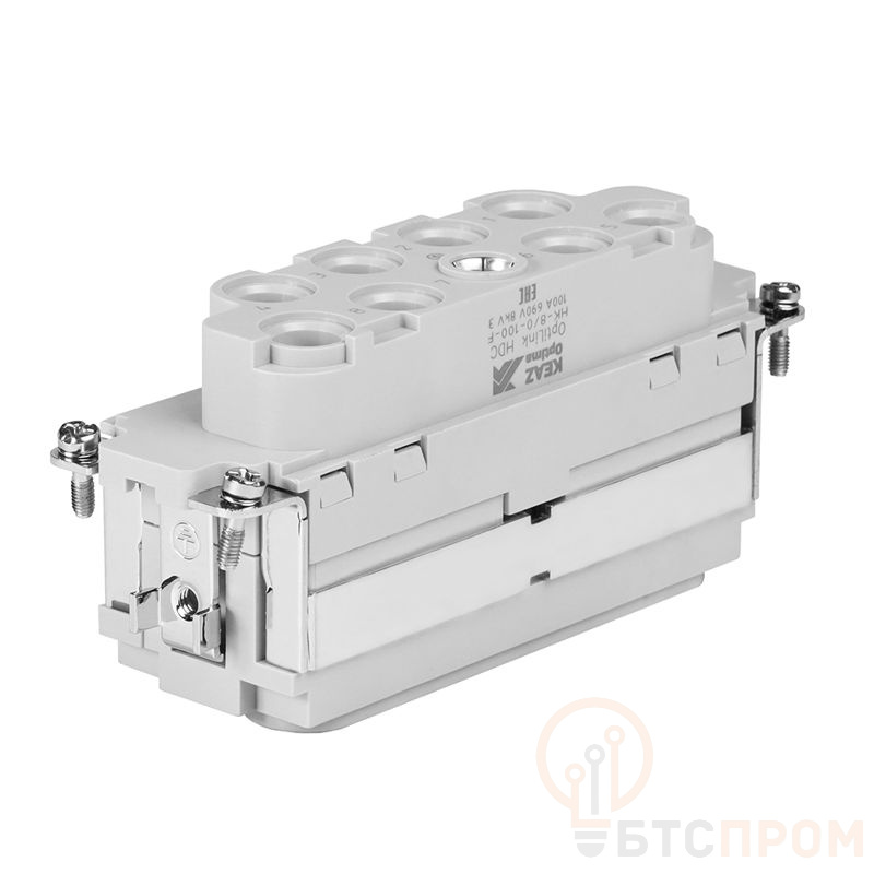 Розетка промышленная OptiLink HDC-HK-8-100-F-(10-25) 690В от КЭАЗ предназначена для безопасного подключения электрооборудования в силовых цепях переменного тока.