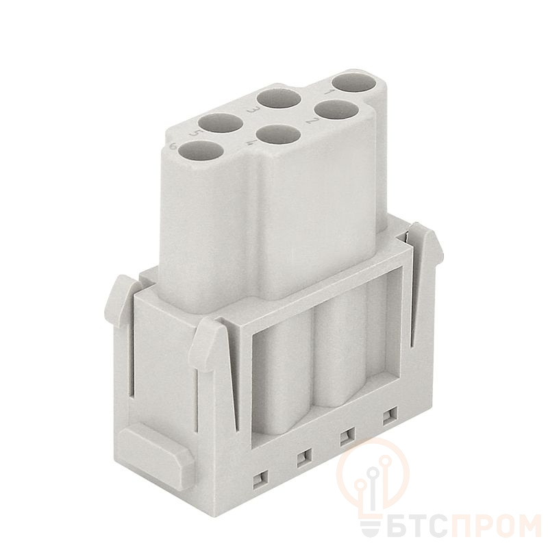 Ключевая особенность — возможность обжима проводов сечением от 0.14 до 4.0 мм², что обеспечивает гибкость при монтаже. Розетка имеет 6 контактов и исполнение с защитным заземлением (FC), что гарантирует безопасность эксплуатации. Корпус выполнен из прочных, не поддерживающих горение материалов.