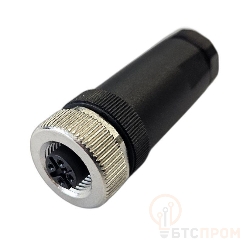 Разъем соединительный М12 4-контактный, гнездовой, с винтовым подключением и прямой резьбой PG9 предназначен для надежной коммутации электрических цепей в условиях повышенной механической нагрузки и вибрации. Корпус изготовлен из прочного пластика, обеспечивающего устойчивость к воздействию масел, влаги и агрессивных сред. Кабельная часть имеет стандарт PG9, что гарантирует герметичный ввод и защиту от пыли и влаги по классу IP67.