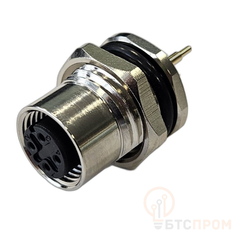Разъем М12 4D гнездовой пайка на печатную плату метал. прямой резьба M16 приборная часть СЦМ120081-04D СТЭЗ 185200560