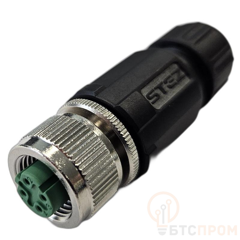 Разъем М12 4D гнездовой пайка пластик. прямой резьба PG7 каб. часть СЦМ120021-04D СТЭЗ 185200160 фото в каталоге от BTSprom.by