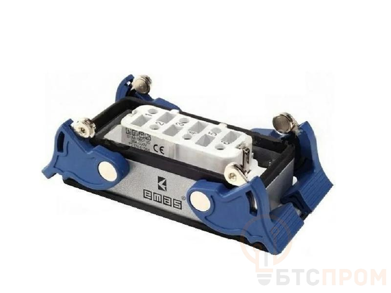 Промышленные разъемы EMAS предназначенный для применения в промышленности, строительстве и производстве комплектного электрооборудования а также для организации временных сетей и подключения переносных потребителей. Широкая гамма разъемов Герметичность в замкнутом положении IP65 Легкий монтаж с помощью фиксирующего винта Корпус и центральная часть модульного типа Фиксирующие сдвоенные ручки с роликами Электростатическое покрытие Ресурс 1 000 000 операции (минимальное значение) Колличество выводов 4P+E, 10, 16,24,32 (2x16) 48(2x24) +PE Механическая стойкость не менее 500 Рабочая температура -40/+125 C Электротехническаие данные 10А-16А, 250В-400В, 6кВ 3 Номинальное напряжение Ue 250В-400В Номинальный ток Ie 10A-16A Степень искажений 3 Номин. импульсное ведерж. напряжение Uimp 6 кВ Сопротивляемость изоляции не менее 10МОм Воспламеняемость V0 Стандарт TS EN