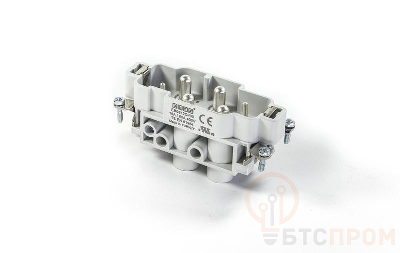 Штепсельный соединитель EMAS EB0812CF00 — это надежное и мощное решение для организации временных или стационарных электрических соединений в промышленных условиях. Устройство обладает конфигурацией 6 полюсов: четыре силовых контакта рассчитаны на ток до 80А, а два вспомогательных — на 16А, что делает его универсальным для управления как основной нагрузкой, так и цепями контроля.
