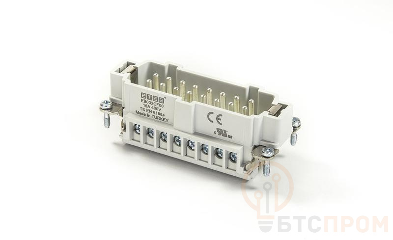 Штепсель для разъемов EMAS EB032CF00 — это надежный и долговечный компонент, предназначенный для создания безопасных и эффективных электрических соединений. Изделие рассчитано на номинальный ток 16 А и имеет 32 контакта, что делает его идеальным решением для сложных промышленных систем.