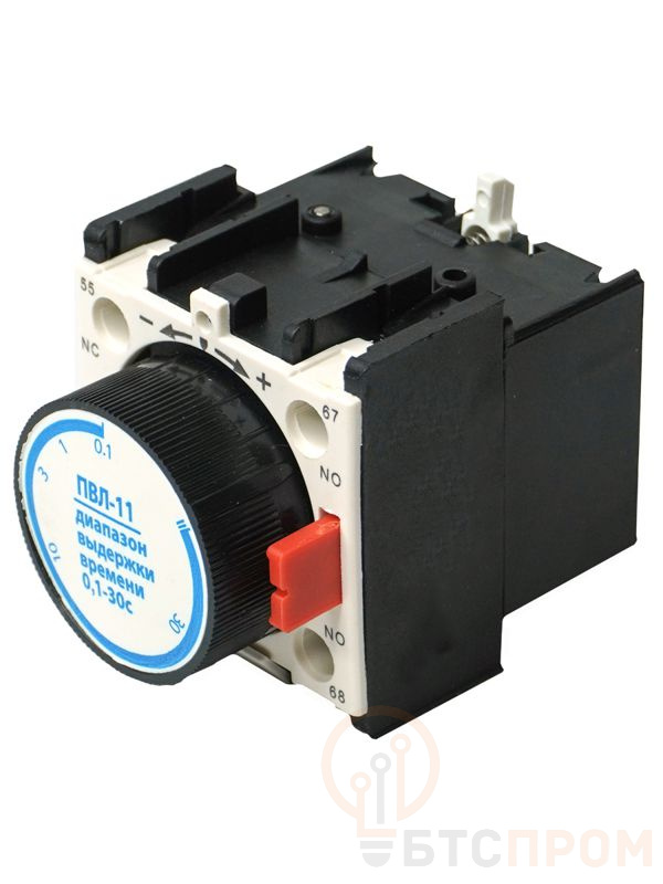 Приставка выдержки времени ПВЛ-11М О4 Б 0.1-30с — это надежное электромеханическое устройство, предназначенное для создания задержки при включении в цепях управления. Основная характеристика — регулируемая выдержка времени в диапазоне от 0.1 до 30 секунд. Устройство оснащено мощными контактами, рассчитанными на коммутацию тока до 10А, что позволяет управлять различными исполнительными механизмами, включая пускатели и катушки контакторов.