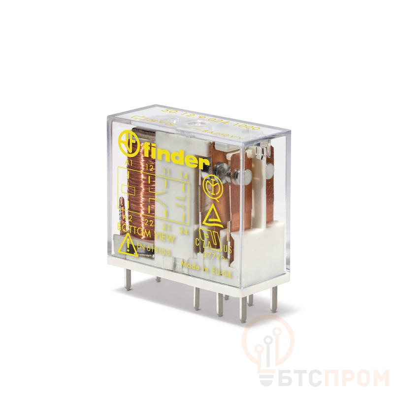 Реле безопасности электромеханич. (реле с принудительным управлением контактами) монтаж на печатную плату или в розетку выводы с шагом 5мм 2CO 8А AgNi 5В DC RTII (уп.10шт) FINDER 501290051000PAC