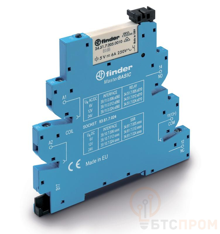 Модуль интерфейсный (сборка 34.51.7.012.0010 + 93.61.7.024) электромеханич. реле MasterBASIC 1CO 6А AgNi 12В AC/DC IP20 винт. клеммы FINDER 391100120060