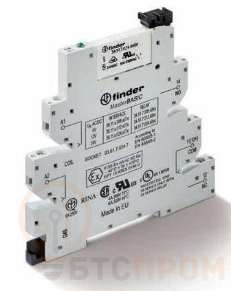 Модуль интерфейсный (сборка 34.51.7.024.0000 + 93.61.0.024.7) электромеханич. реле серия MasterBASIC 1CO 6А AgNi 24В AC/DC IP20 винт. клеммы версия ATEX FINDER 391100240073