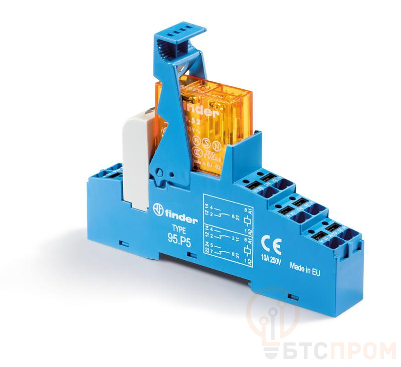 Модуль интерфейсный (сборка 40.52.8.024.0000 + 99.02.0.024.98 + 95.P5SPA) электромеханич. реле 2CO 8А AgNi 24В AC IP20 безвинт. клеммы Push-in пластик. клипса LED + варистор FINDER 48P580240060SPA