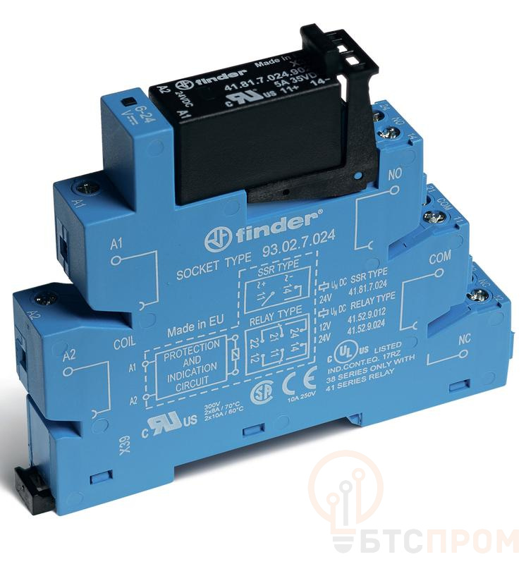 Модуль интерфейсный (сборка 41.81.7.012.8240 + 93.02.7.024) твердотельное реле выход 3А (240В AC) 24В DC IP20 винт. клеммы FINDER 383170248240