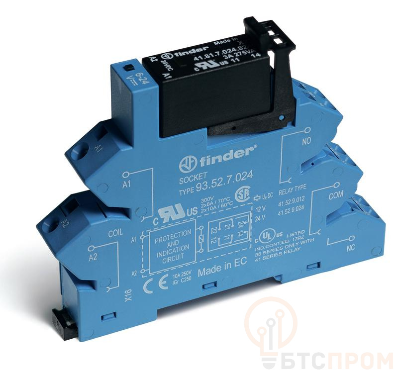 Модуль интерфейсный (сборка 41.81.7.012.8240 + 93.52.7.024) твердотельное реле выход 3А (240В AC) 24В DC IP20 безвинт. клеммы (пружинный зажим) FINDER 384170248240