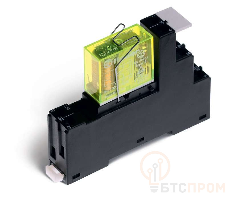 Модуль интерфейсный (сборка 50.12.9.012.1000 + 95.05.7SMA) электромеханич. реле безопасности 2CO 8А AgNi 12В DC IP20 винт. клеммы металлич. клипса LED + диод FINDER 481290121002SMA