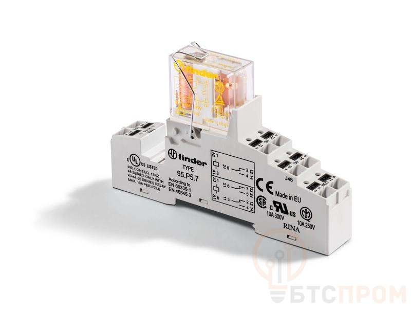 Модуль интерфейсный (сборка 50.12.9.024.5000 + 95.P5SMA) электромеханич. реле безопасности 2CO 8А AgNi+Au 24В DC IP20 клеммы Push-in металлич. клипса FINDER 48P290245007SMA