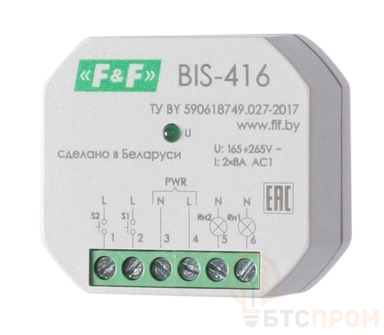 Реле импульсное BIS-416 (2 независимых канала; макс. ток нагрузки 2х8А; в монтаж. коробку) F&F EA01.005.011