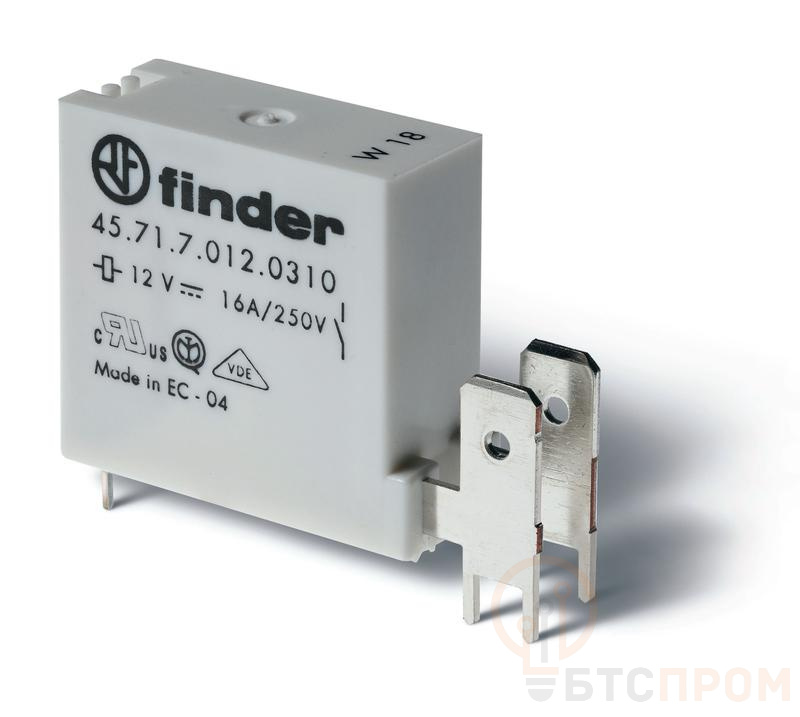 Миниатюрное низкопрофильное реле RTII от FINDER (модель 45.71) предназначено для монтажа непосредственно на печатную плату, что позволяет эффективно использовать пространство внутри электронных устройств. Ключевой особенностью данной модели является комбинированная система подключения: выводы с шагом 5 мм для пайки в плату и быстросъемный контакт Faston 250 (6.3х0.8 мм) для силовой цепи.