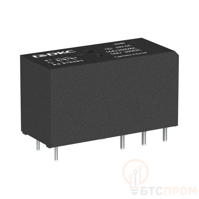 Реле миниатюрное низкопрофильное на 2 контактные группы. Предназначено для коммутации электрических схем. Коммутируемый ток составляет 8 А, напряжение питания катушки – 24 В AС. Установка – в колодку.