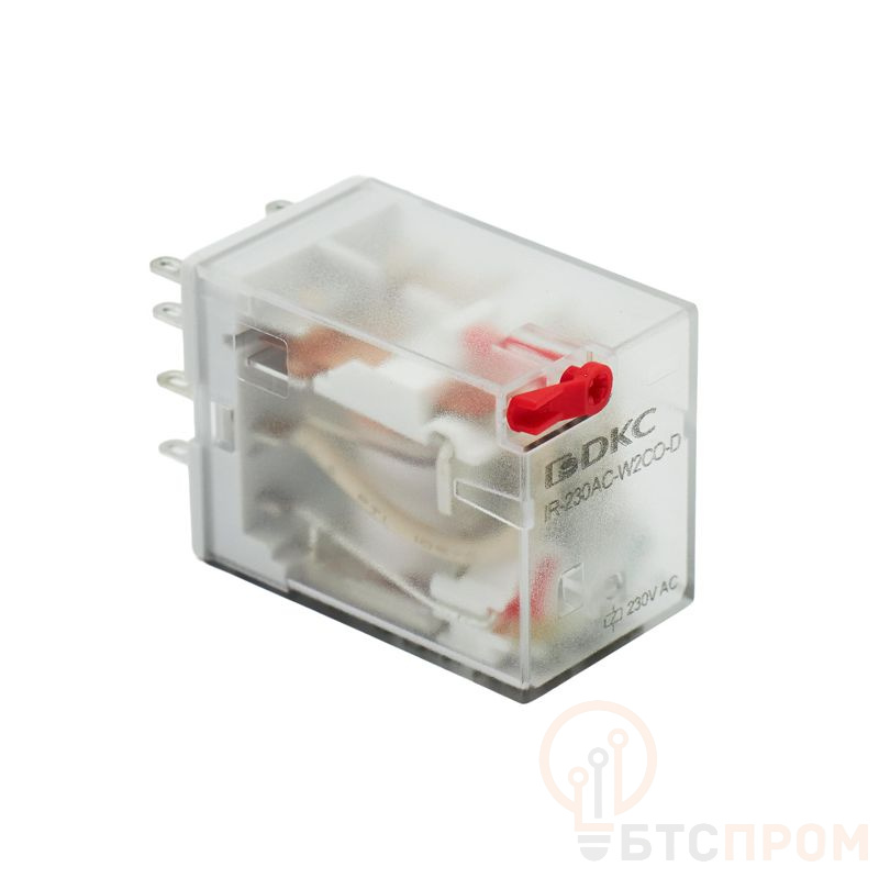 Реле миниатюрное промышленное общего назначения 2CO ком. ток 12А AgSnO2 напряжение 230В AC опция: тест-кнопка+светодиод DKC IR-230AC-W2CO-D