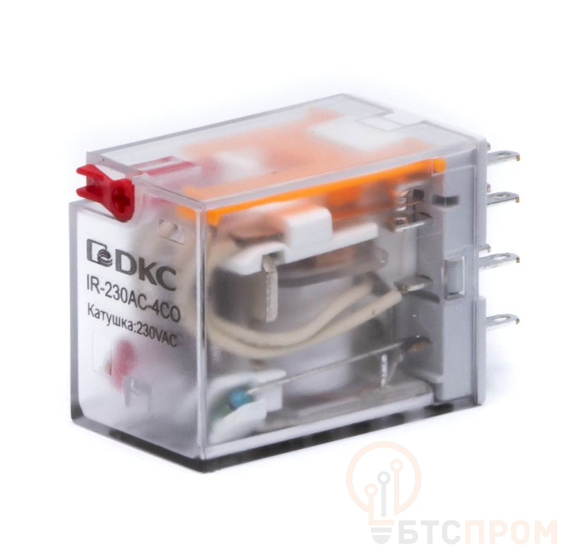 Реле миниатюрное промышленное общего назначения 4CO ком. ток 6А AgSnO2 напряжение 12В AC опция: тест-кнопка+светодиод DKC IR-12AC-4CO-D