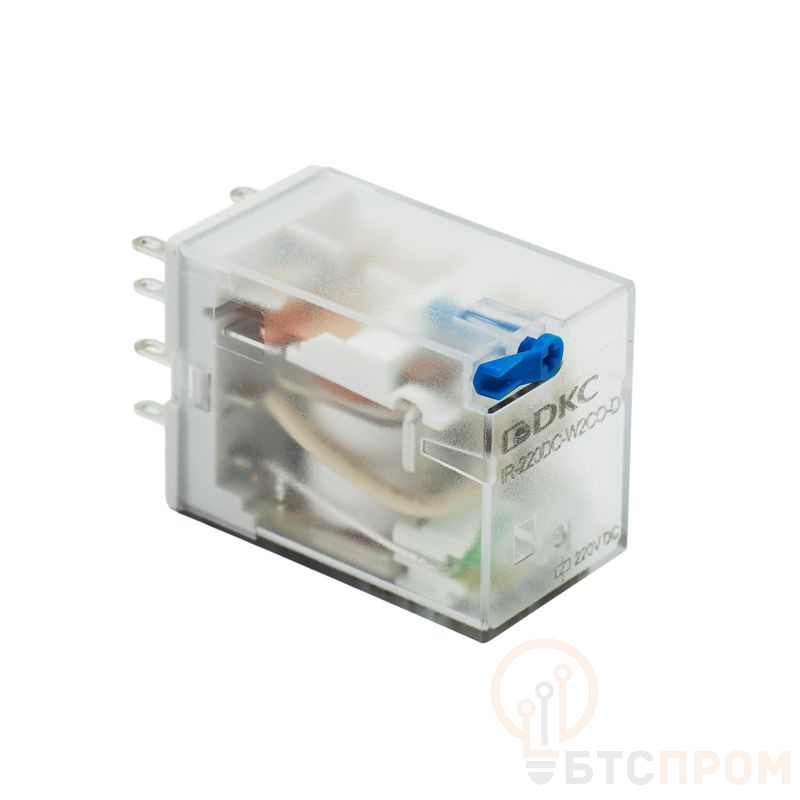 Реле миниатюрное промышленное общего назначения с норм. срабатыванием 0.6UN 2CO ком. ток 12А AgSnO2 напряжение 220В DC опция: тест-кнопка+светодиод+защитный диод DKC IR-220DC-W2CO-D