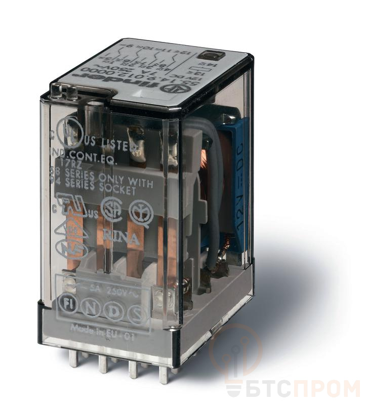 Реле миниатюрное универсальное электромеханическое FINDER серии 55 — это надежный и компактный коммутационный прибор, предназначенный для монтажа непосредственно на печатную плату. Модель 55.14.1.255.0000 оснащена 4 перекидными контактами (4CO), что позволяет гибко управлять несколькими независимыми цепями. Коммутационная способность контактов составляет до 7А, что делает реле подходящим для управления различными нагрузками.