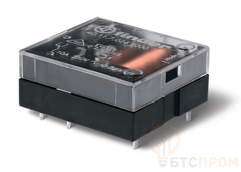 Реле миниатюрное универсальное электромеханическое RTI FINDER 40.11 предназначено для монтажа непосредственно на печатную плату, что обеспечивает компактность и надежность интеграции в электронные схемы. Устройство оснащено плоскими выводами с шагом 3.5 мм, что соответствует стандартным посадочным местам и упрощает процесс пайки.