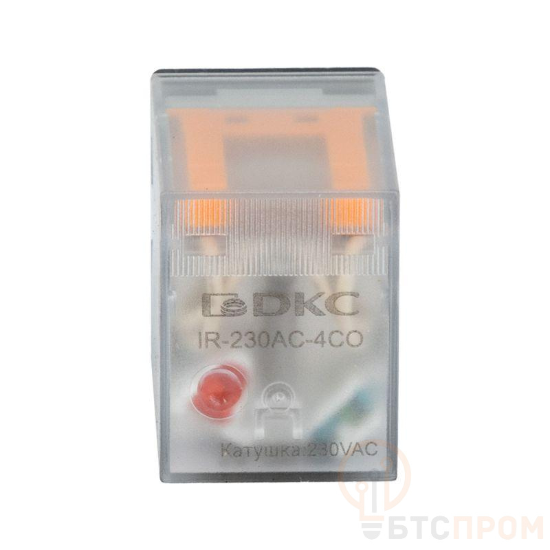 Реле миниатюрное промышленное на 4 контактные группы. Предназначено для коммутации электрических схем. Коммутируемый ток составляет 6А, напряжение питания катушки 230В АС. Для удобства, в реле встроена светодиодная индикация. Установка в колодку.