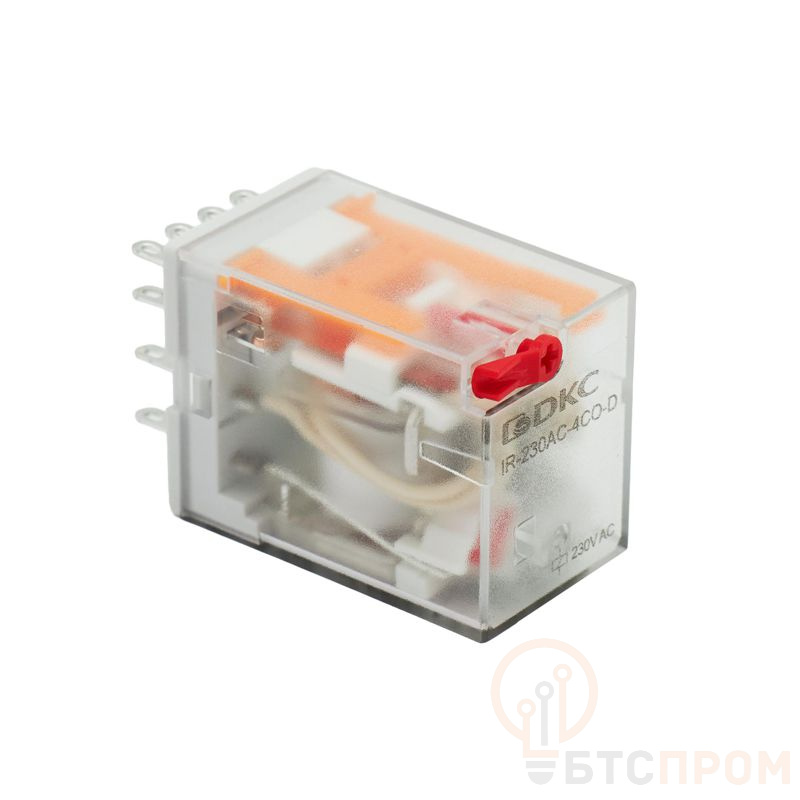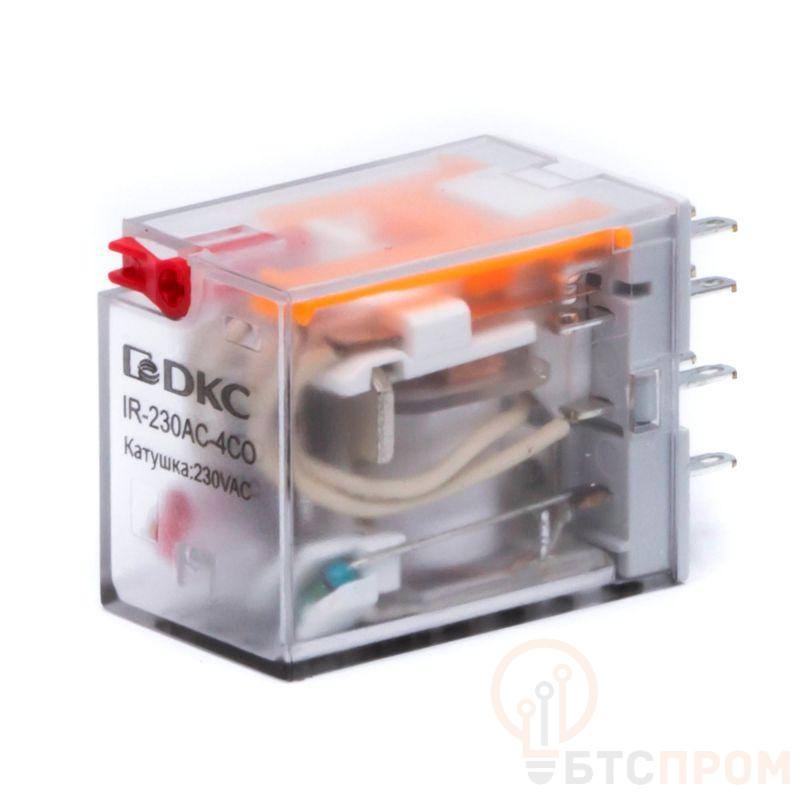 Реле миниатюрное промышленное на 4 контактные группы. Предназначено для коммутации электрических схем. Коммутируемый ток составляет 6А, напряжение питания катушки 230В АС. Для удобства, в реле встроены кнопка-тест с блокировкой и светодиодная индикация. Установка в колодку.