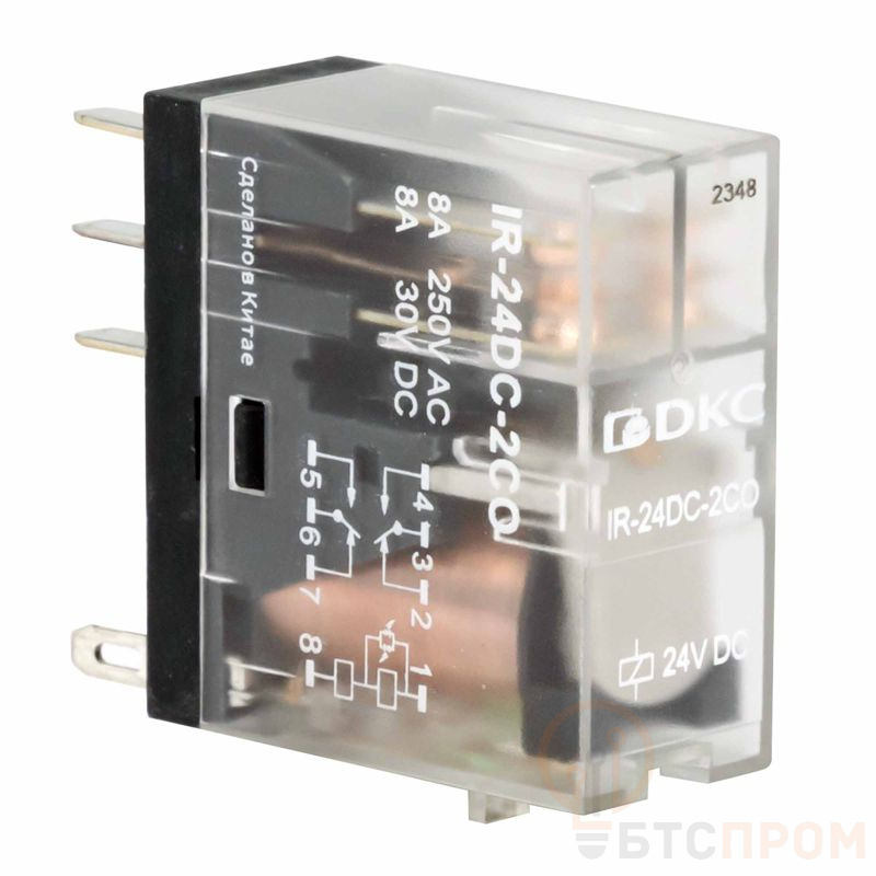 Реле миниатюрное промышленное на 2 контактные группы. Предназначено для коммутации электрических схем. Коммутируемый ток составляет 8А, напряжение питания катушки 24В DС. Для удобства, в реле встроена светодиодная индикация. Установка в колодку.