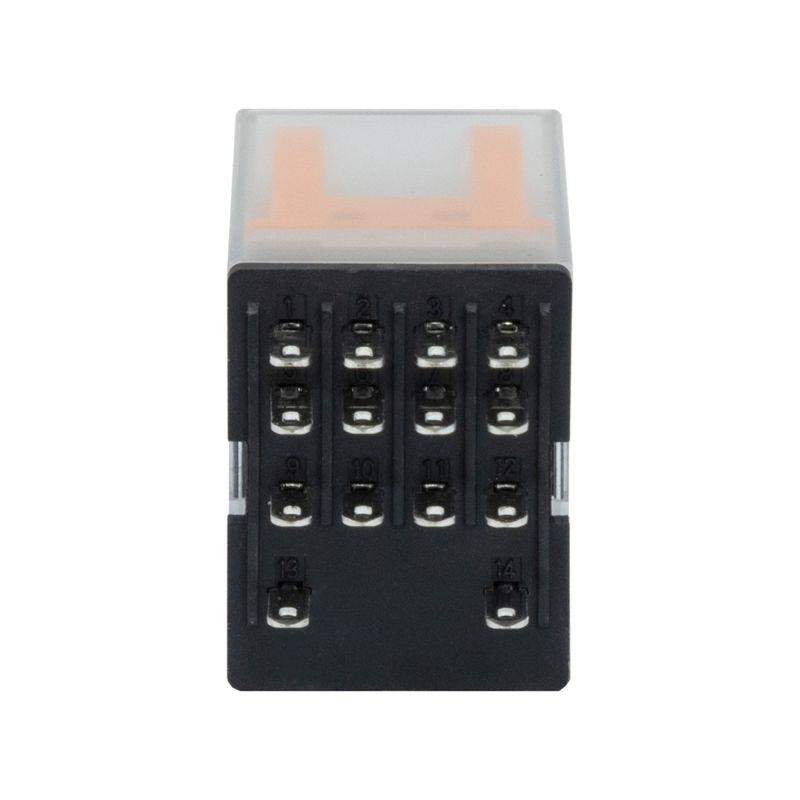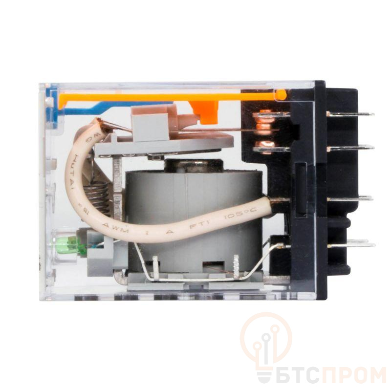 Реле миниатюрное промышленное на 4 контактные группы. Предназначено для коммутации электрических схем. Коммутируемый ток составляет 6А, напряжение питания катушки 24В DС. Для удобства, в реле встроены кнопка-тест с блокировкой, защитный диод и светодиодная индикация. Установка в колодку.
