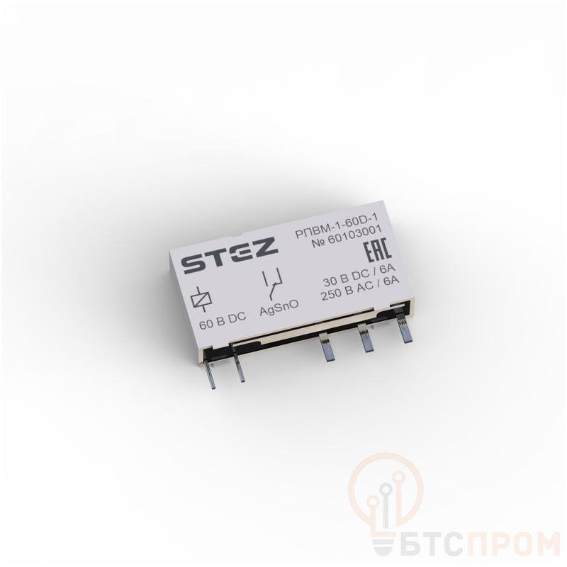 Реле одиночное РПВМ-1-60D-1 от СТЭЗ (арт. 60103001) — это надежный электромагнитный прибор, предназначенный для коммутации электрических цепей управления, сигнализации и автоматики в стационарных установках. Устройство рассчитано на номинальное напряжение до 60 В постоянного тока, что обеспечивает стабильную работу в низковольтных системах.