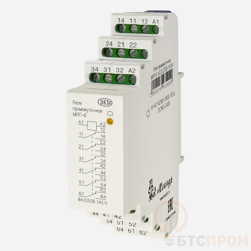 Реле промежуточное МРП-6 AC230В УХЛ4 Меандр A8302-16933932 фото в каталоге от BTSprom.by
