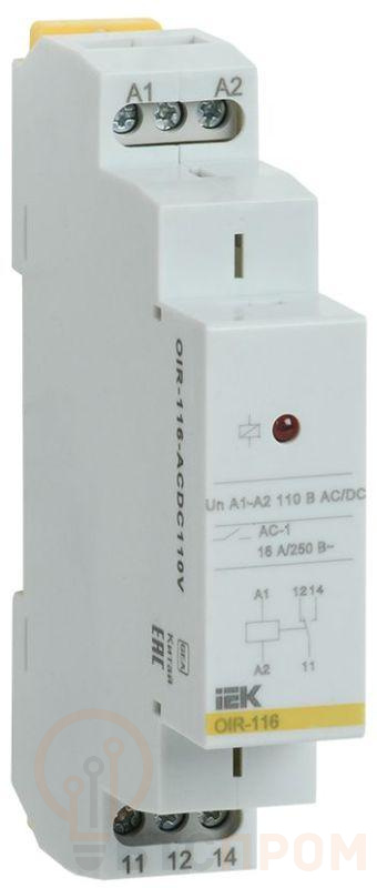 Предназначено для гальванической развязки и передачи команд управления исполнительным элементам, между силовыми цепями и цепями управления. Одна контактная группа, с коммутационной возможностью до 16А. Номинальное напряжение катушки реле 110В AC/DC.