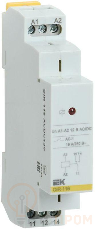 Предназначено для гальванической развязки и передачи команд управления исполнительным элементам, между силовыми цепями и цепями управления. Одна контактная группа, с коммутационной возможностью до 16А. Номинальное напряжение катушки реле 12В AC/DC.
