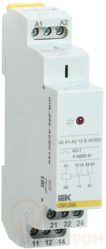 Предназначено для гальванической развязки и передачи команд управления исполнительным элементам, между силовыми цепями и цепями управления. Две контактных группы, с коммутационной возможностью до 8А каждая. Номинальное напряжение катушки реле 12В AC/DC.