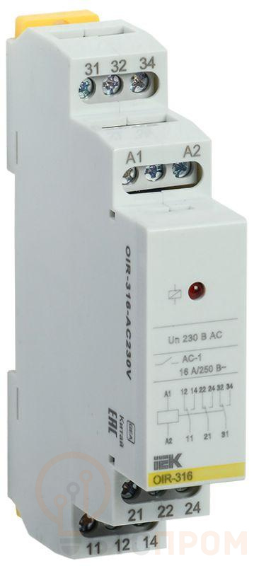 Предназначено для гальванической развязки и передачи команд управления исполнительным элементам, между силовыми цепями и цепями управления. Три контактных группы, с коммутационной возможностью до 16А каждая. Номинальное напряжение катушки реле 230В AC.