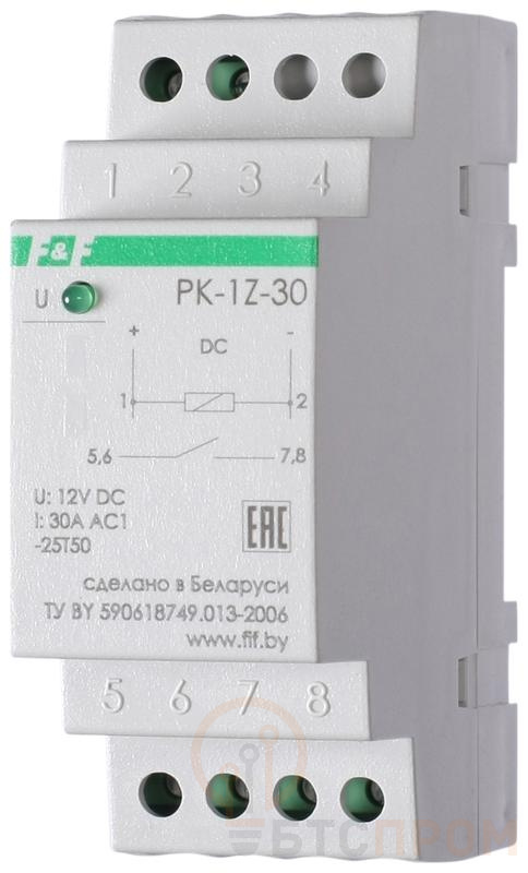 Реле промежуточное PK-1Z-30 (монтаж на DIN-рейке 35мм 12В DC 30А 1Z IP20) F&F EA06.001.018 фото в каталоге от BTSprom.by