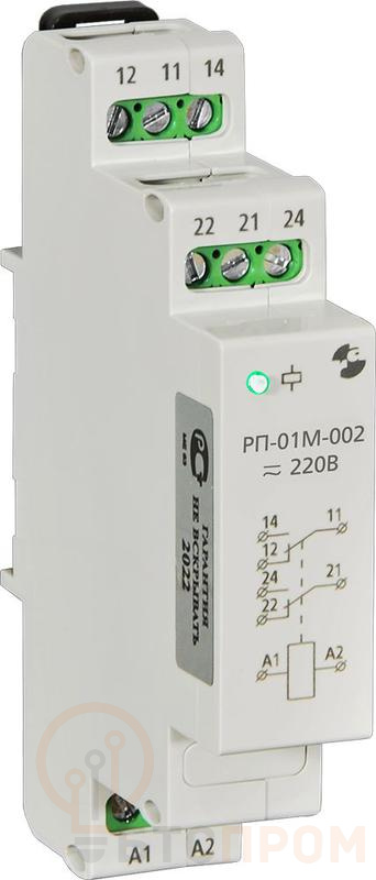 Реле промежуточное РП-01М-002 — это надежный и компактный коммутационный аппарат, предназначенный для работы в цепях управления и автоматики. Устройство рассчитано на номинальное напряжение катушки 24 В переменного тока частотой 50 Гц.