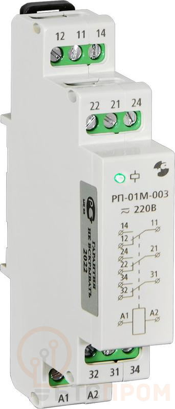 Промежуточное реле РП-01М-003 — это надежный и компактный коммутационный аппарат, предназначенный для работы в цепях управления и автоматики. Устройство рассчитано на номинальное напряжение катушки 220 В переменного тока частотой 50 Гц.