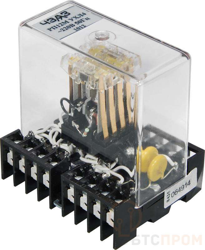 Промежуточное реле РП-12М 110В заднее присоединение от производителя ЧЭАЗ (артикул A8119-77951248) — это надежный аппарат коммутации и управления, предназначенный для работы в цепях переменного тока. Устройство монтируется на стандартную DIN-рейку, что упрощает установку в распределительные щиты и шкафы управления.