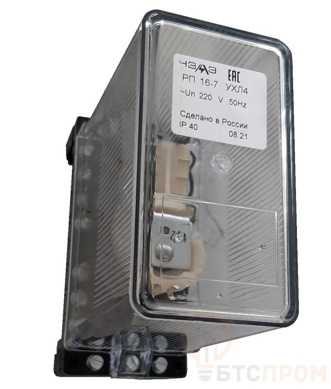 Промежуточное реле РП-16-7 от производителя ЧЭАЗ (артикул A8119-77952269) — это надежный и универсальный коммутационный аппарат, предназначенный для работы в цепях управления и автоматики. Устройство рассчитано на номинальное напряжение 220 В переменного тока частотой 50 Гц. Модель имеет исполнение с 4 нормально разомкнутыми (замыкающими) и 2 нормально замкнутыми (размыкающими) контактами, что обеспечивает гибкость при построении сложных схем.
